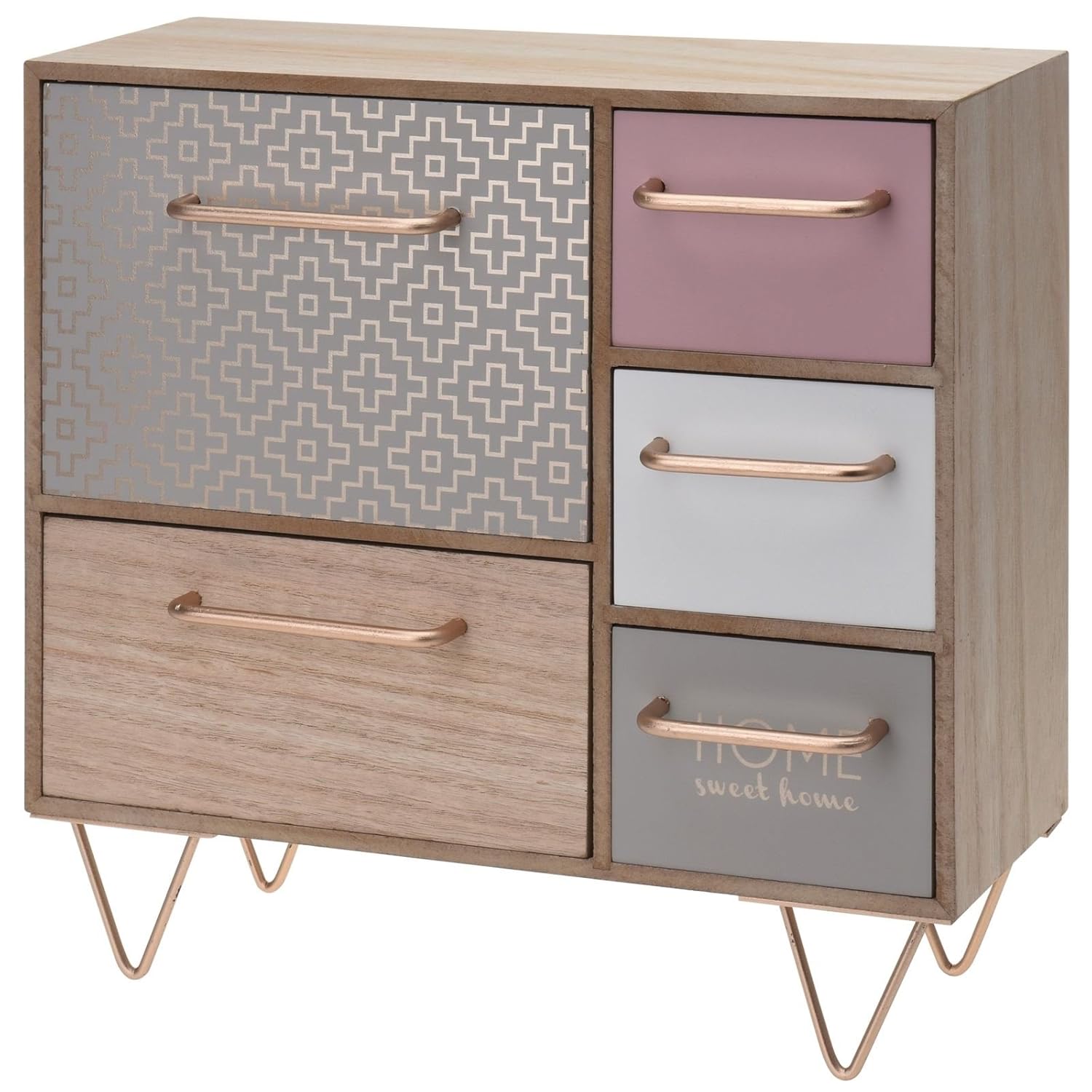 Wooden Mini Dresser With 5 Drawers Drawer Cabinet Shabby Chic Country Cottage Jewellery Box Storage Room Tidy Shelf Organiser Cupboard Furniture