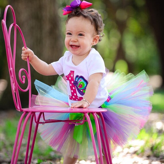 Baby Girl 1st Birthday Outfit Butterfly Birthday Tutu Outfit Garden Party Birthday Hot Pink Purple Teal Lime Green Tutu